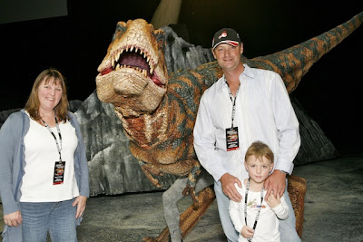 Tom will be turning 6yo in early July and Mark and I have already given him his present. We bought him (and us) tickets to see Walking with Dinosaurs in Melbourne. Mark and I have already seen this show when it kicked off its worldwide tour back in 2007 (I think) and it hasn't changed at all, but remains a great show. Tom had no idea where we were taking him and he wasn't game to even dare think that it would be to this show even when he saw the advertising at Hi-Sense Arena. He had a ball and I've attached the official photo of us with baby T-Rex.